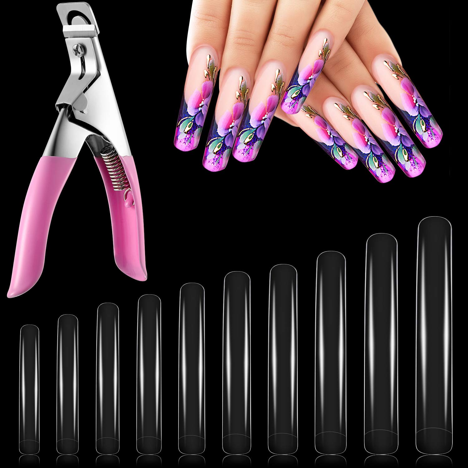 Amazon Com 101 Pieces Acrylic Fake Nails Kit Includes 100 Pieces Clear Curve Extra Long Flatheaded Nail Diy Art Artificial Tips And 1 Acrylic Nail Clipper Cutter Trimmer Manicure Tools Beauty
